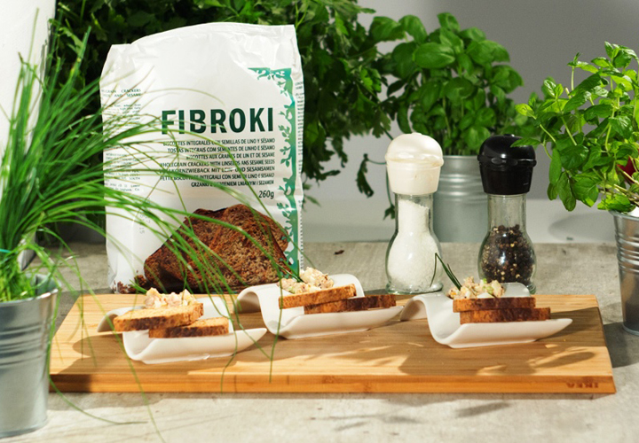 Ciabattę zgrillować z obu stron, posmarować serkiem. Nałożyć po kolei: ruk...